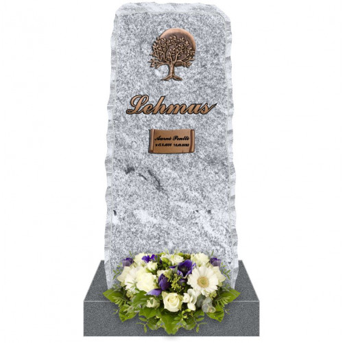 Ylöspäin hieman kapeneva pystykivi muistuttaa mittasuhteiltaan hautausmaiden vanhimpien osien muistomerkkejä. Kiven yläosan pronssinen puukoriste ja pronssiset sukunimi ja muistolaatta sopivat värimaailmaltaan malliin valittujen timanttiharjattujen pintojen kanssa korostaen kivilaatujen sävyjä. Tämän mallin voi viimeistellä valitsemalla kukkareunakivet rajaamaan haudan istutusalueen siistiksi.