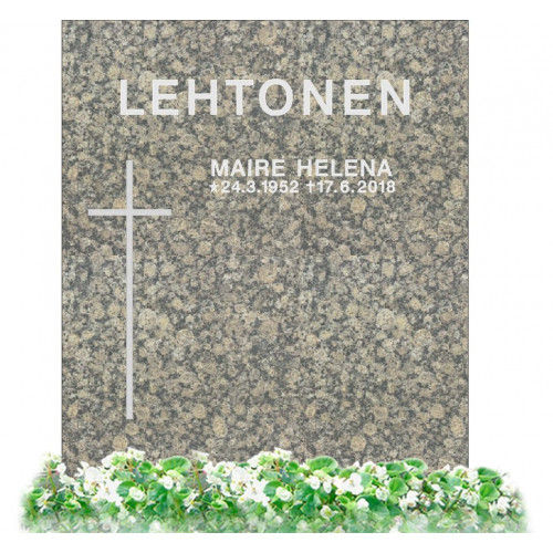 Kokoisekseen erittäin edullinen pystymallinen suorasivuinen perushautakivi. Voit valita lisäominaisuutena myös kiillotetut näkyvät sivut, jotka tekevät puhtaanapidosta helppoa. Voit viimeistellä muistomerkin lisävalinnoista valittavilla pronssilinnuilla ja hauta-alueen istutukset rajaavilla kukkareunakivillä tai kukka-aukollisella pohjakivellä.